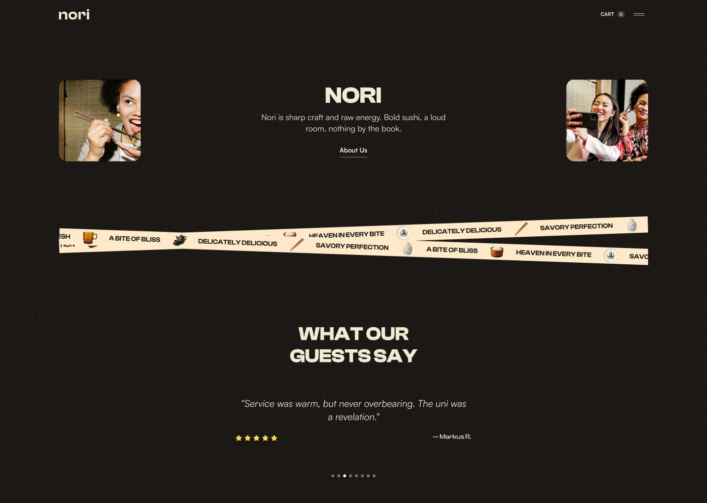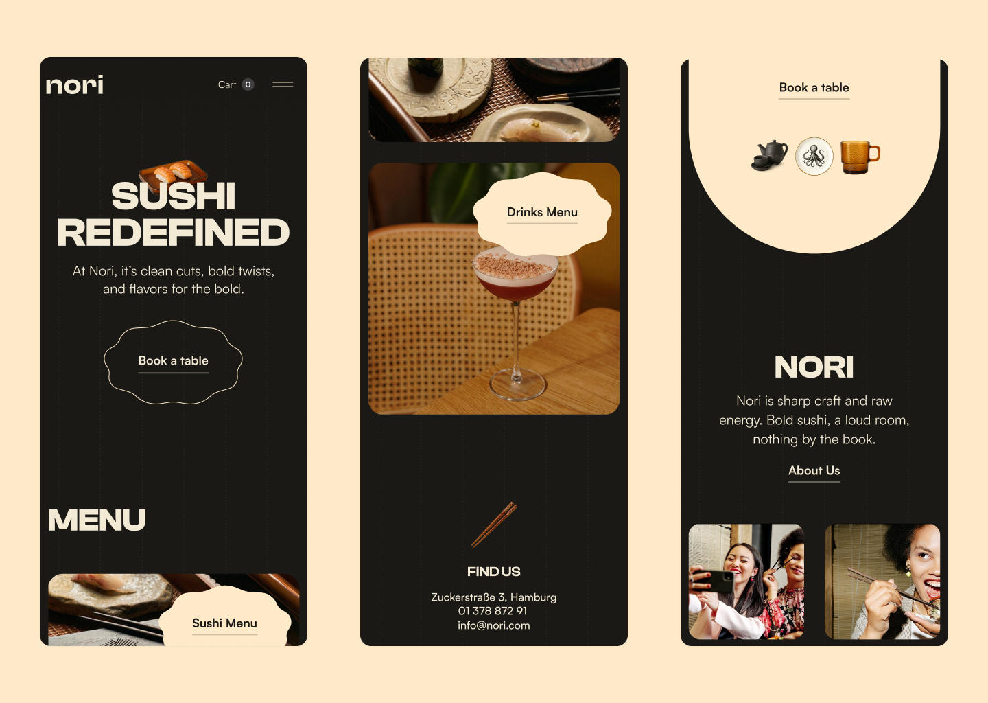 Website for a sushi restaurant with a built-in booking flow to make reservations quick. Designed a clean layout that highlights the menu and converts visitors into bookings.